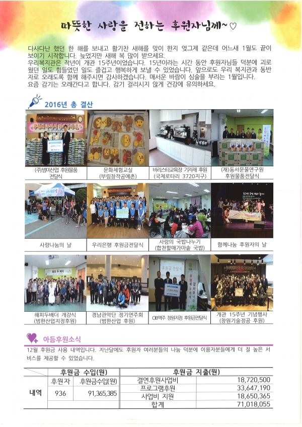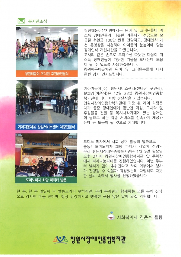 2016년 12월 감사편지입니다. 페이지 정보 작성자 김준수 댓글 0건 조회 6,836회 작성일 17-03-02 11:23 본문 후원해주셔서 감사합니다. 이전글2016년 12월 후원자현황입니다. 17.03.02 다음글2016년 11월 후원감사편지입니다. 17.01.05 목록 댓글목록 댓글목록 등록된 댓글이 없습니다.