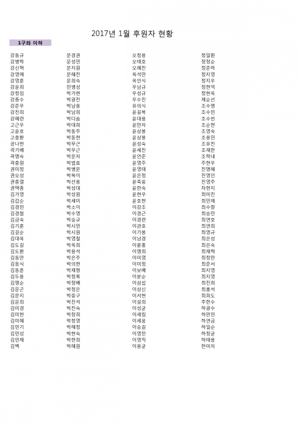 2017년 1월 후원자현황입니다. 페이지 정보 작성자 김준수 댓글 0건 조회 6,858회 작성일 17-03-10 13:17 본문 후원해주셔서 감사합니다. 이전글2017년 2월 후원자현황입니다. 17.03.13 다음글2017년 1월 후원감사편지입니다. 17.03.10 목록 댓글목록 댓글목록 등록된 댓글이 없습니다.