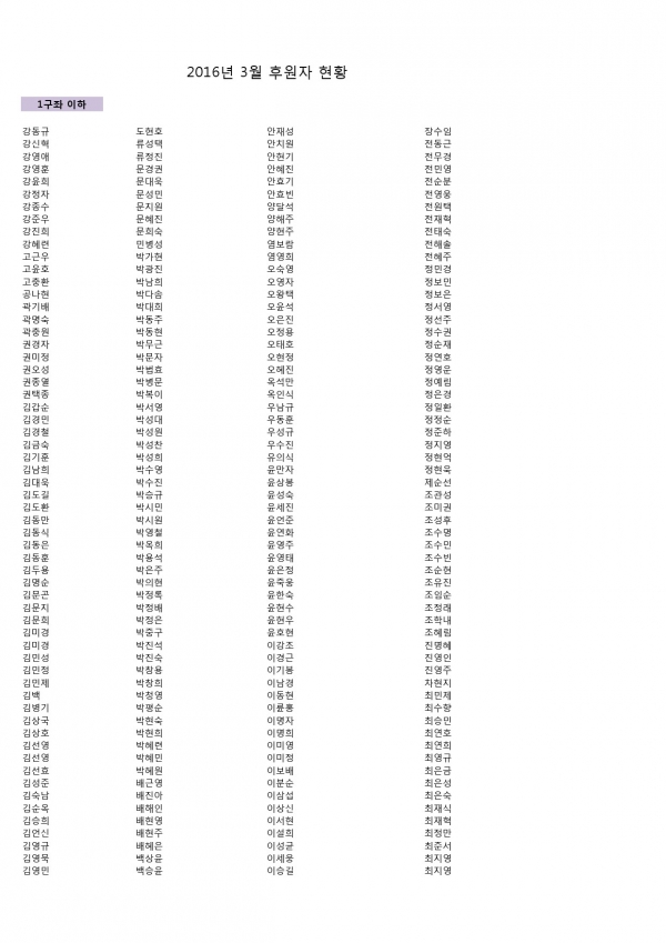 2016년 3월 후원자현황입니다. 페이지 정보 작성자 김준수 댓글 0건 조회 6,194회 작성일 16-05-20 16:55 본문 후원해주셔서 감사합니다. 이전글2016년 4월 후원자 현황입니다. 16.05.23 다음글2016년 4월 후원감사편지입니다. 16.04.20 목록 댓글목록 댓글목록 등록된 댓글이 없습니다.