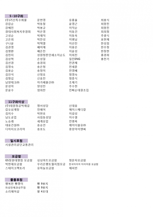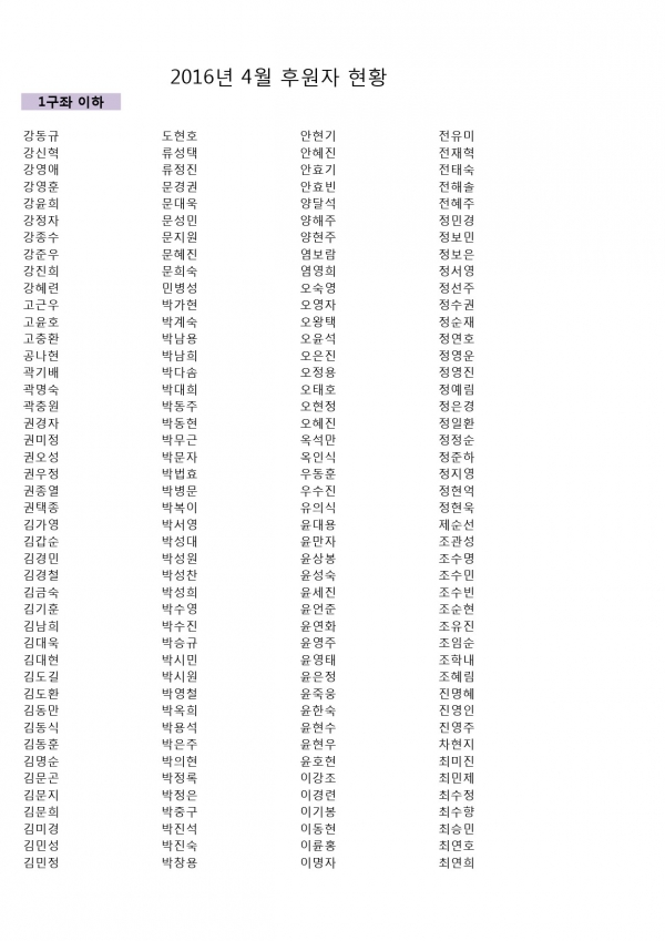 2016년 4월 후원자 현황입니다. 페이지 정보 작성자 김준수 댓글 0건 조회 6,508회 작성일 16-05-23 17:04 본문 후원해주셔서 감사합니다. 이전글2016년 5월 후원감사편지입니다. 16.05.23 다음글2016년 3월 후원자현황입니다. 16.05.20 목록 댓글목록 댓글목록 등록된 댓글이 없습니다.