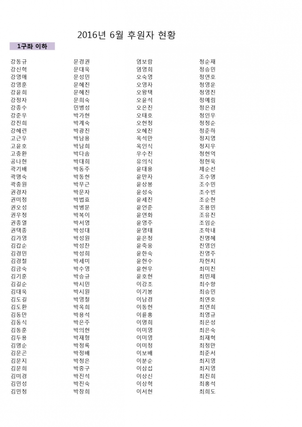 2016년 6월 후원자현황입니다. 페이지 정보 작성자 김준수 댓글 0건 조회 6,705회 작성일 16-07-07 18:24 본문 후원해주셔서 감사합니다. 이전글2016년 6월 후원감사편지입니다. 16.07.20 다음글2016년 5월 후원자현황입니다. 16.06.07 목록 댓글목록 댓글목록 등록된 댓글이 없습니다.