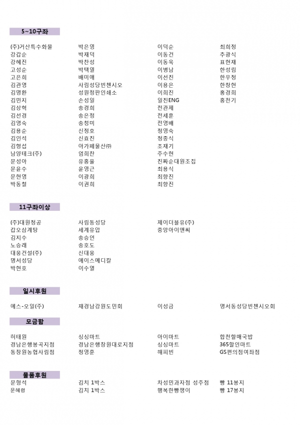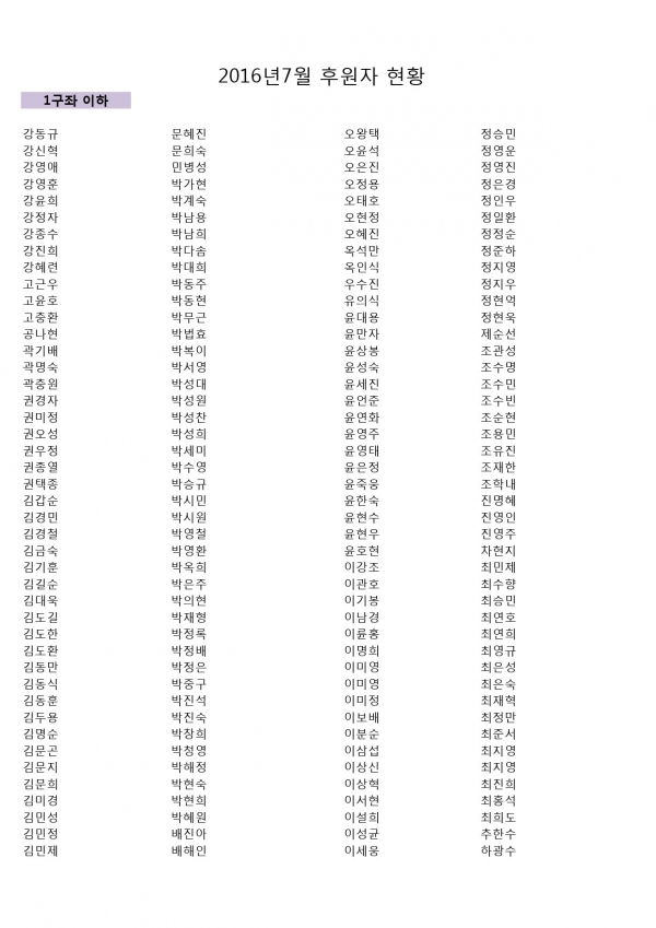 2016년 7월 후원자현황입니다. 페이지 정보 작성자 김준수 댓글 0건 조회 6,498회 작성일 16-08-16 14:52 본문 후원해주셔서 감사합니다. 이전글2016년 7월 후원감사편지입니다. 16.08.16 다음글2016년 6월 후원감사편지입니다. 16.07.20 목록 댓글목록 댓글목록 등록된 댓글이 없습니다.